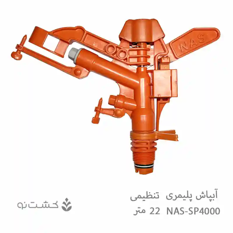 آبپاش پلیمری NAS تنظیمی مدل SP4000A از سری آبپاشهای پلیمری تنظیمی باکیفیت است که توسط شرکتهای معتبر ترکیهای طراحی و در ایران نیز با کیفیت مشابه تولید میشود. این مدل از نوع تنظیمی (نیمدور تا تمامدور) بوده و شما میتوانید زاویه پاشش آن را بین ۳۰ تا ۳۶۰ درجه تنظیم کنید.