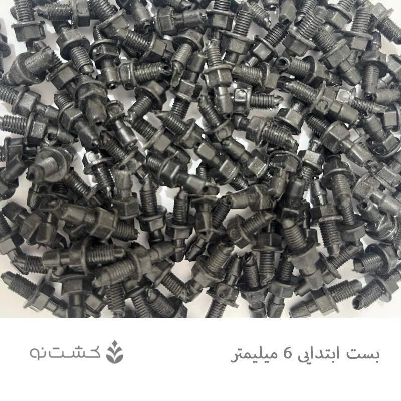بست ابتدایی 6 میل یکی از اتصالات مهم در سیستم آبیاری قطرهای است که برای اتصال لولههای ماکارونی (لوله قطرهچکان) به لولههای پلیاتیلن ازجمله لوله ۱۶ میلیمتری به کار میرود. استفاده از این بست باعث میشود جریان آب از خط فرعی بهصورت کاملاً کنترلشده وارد لوله ماکارونی شده و در نهایت به ریشه هر گیاه برسد؛ بنابراین آبیاری دقیقتر، هدفمندتر و با هدررفت کمتر انجام میشود.